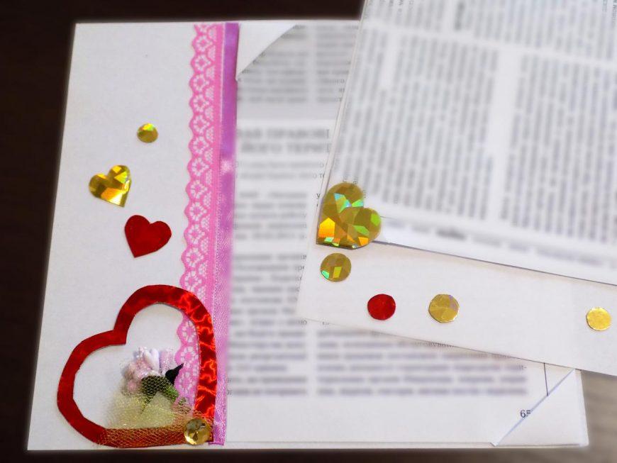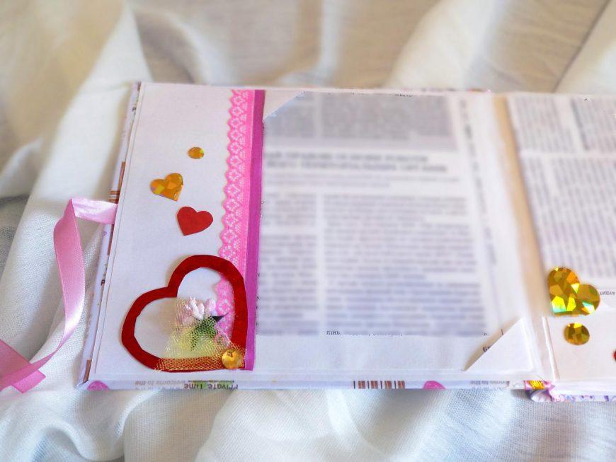 Личный дневник, оформленный посредством скрапбукинга, может стать отличным подарком на 14 февраля. Обязательно поместите в него фотографии вашей пары, сердечки и ангелочков. Также можно снабдить конструкцию фигурками оригами.