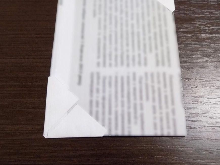 - Приклейте марлю либо клеевую ткань таким способом, чтобы получился переплёт, оставив по полтора сантиметра ткани на краях.
