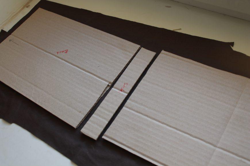 - Плотный картон для обложки, листовой синтепон, ткань.