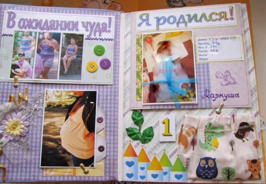 Каждая страница должна описывать один месяц из жизни ребенка. Например, на первой разместить информацию о беременности, на второй – о рождении, на третьей о первом месяце жизни и т.д.