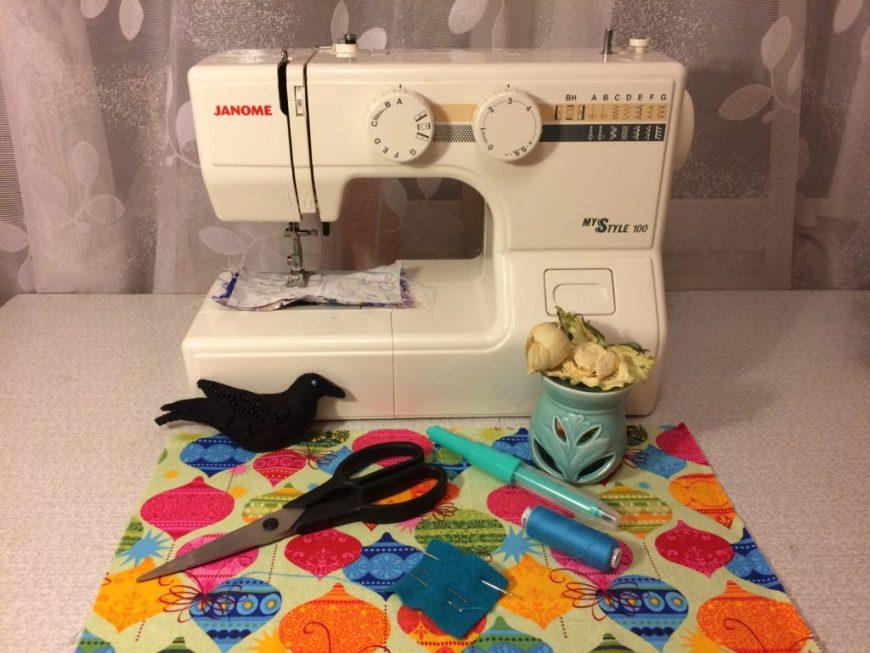 - Швейная машинка и нитки в тон.