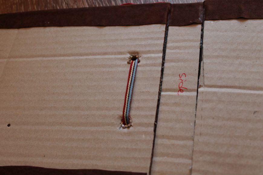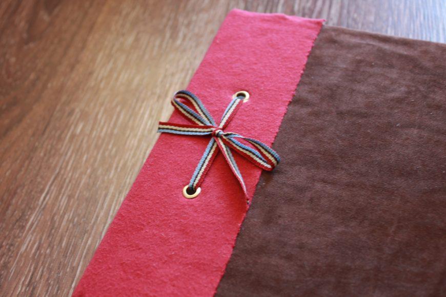Проще всего сделать переплет на кольцах, лентах или шнурке. Для этого по краям страниц и обложки дыроколом пробиваются отверстия, в которые для дополнительной прочности можно вставить люверсы – металлические кольца. Они не дадут картону порваться или протереться со временем.
