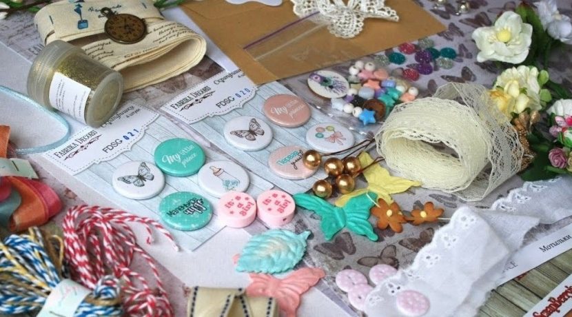 - Ленты, вырубки, чипборды, цветы, тычинки, пуговицы полубусины и другие декоративные элементы.