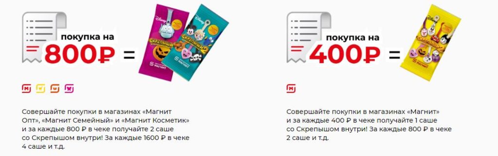 В Магните новая акция, где будут за 400 и 800 рублей выдавать пакетик со скрепышом.