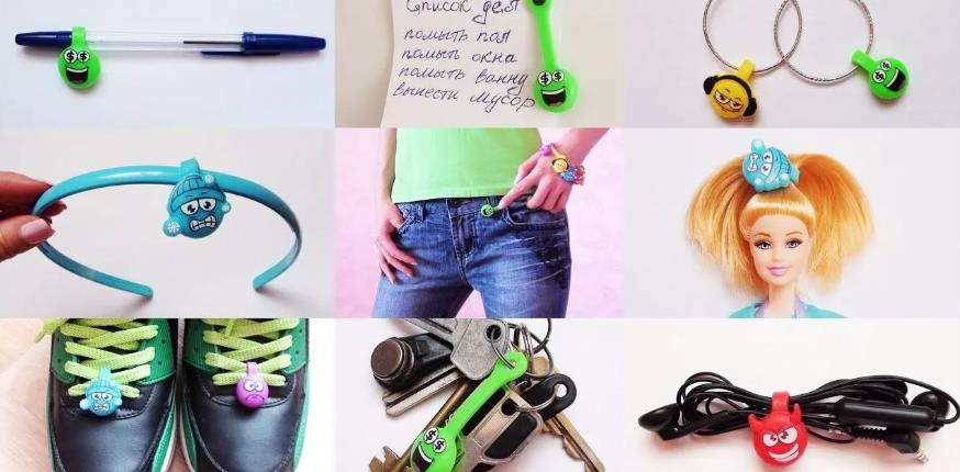 Для чего нужны эти забавные крошечные игрушки из силикона? Взрослые недоумевают, что может быть в них интересного. Но они забывают, что это не просто силиконовые фигурки с забавными мордочками. Сзади у них есть кнопка держатель. А в нижней части круглое отверстие. С помощью этих приспособлений Скрепышей можно соединять между собой. Образуются разнообразные полезные вещицы. Например: