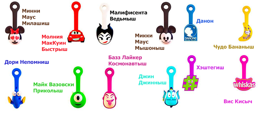 Что можно сделать из этих штучек, которые выдаются на кассе за покупки на определенную сумму. На упаковочках скрепышей, которые, кстати непрозрачные (увидеть, какой внутри находится скрепыш, нельзя), нарисовано несколько примеров использования скрепыша, для скрепления скрученного провода телефонной зарядки, для скрепления наушников и даже для шнурков. Также их можно использовать в качестве зажимов для пакетов. То есть это не совсем бесполезные штучки, как кажется на первый взгляд. К тому же они довольно забавные, яркие, разноцветные, большинство из них с мордочками.