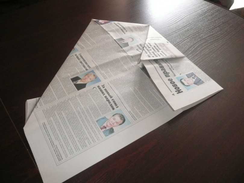 - возьмите обыкновенный двойной газетный лист и сложите его пополам, а когда образуется линия сгиба, выложите лист на столе ровно – так, чтобы сгиб выступал вверх;