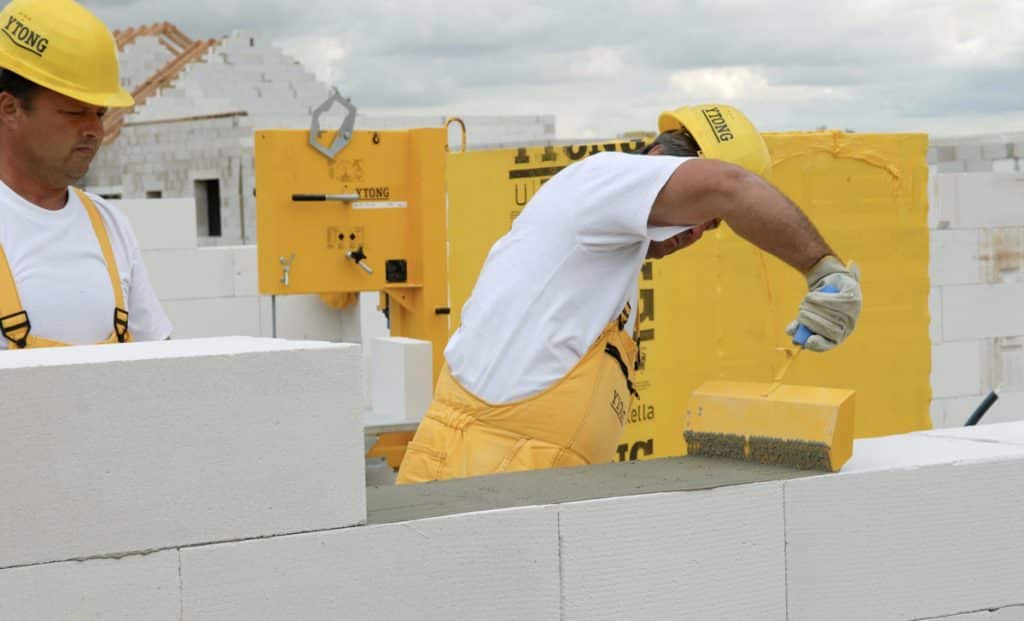 Газобетон не сложен в монтаже. На распиловку блока уходит 2 минуты, а сам процесс схож с укладкой кафеля. Главное, правильно сделать первый ряд. От него зависит качество постройки