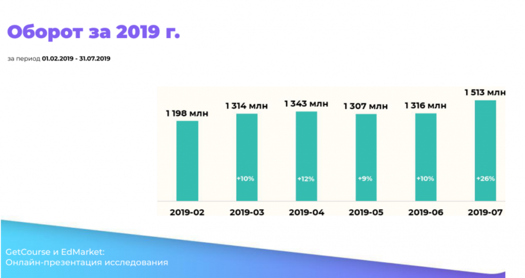 - Оборот онлайн-школ с февраля по июль 2019