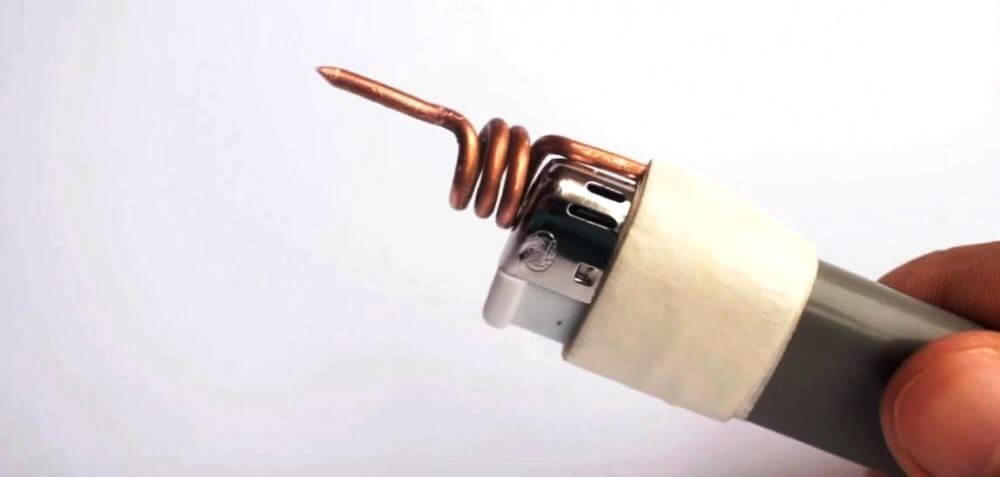 Если будешь пользоваться этим способом, то особое внимание обрати на место прилегания проволоки к корпусу зажигалки. Там от нагрева может образоваться дырка