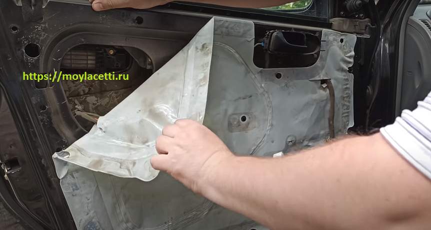 Примечание. Как снять обшивку задней двери, показано тут — Как снять карту задней двери