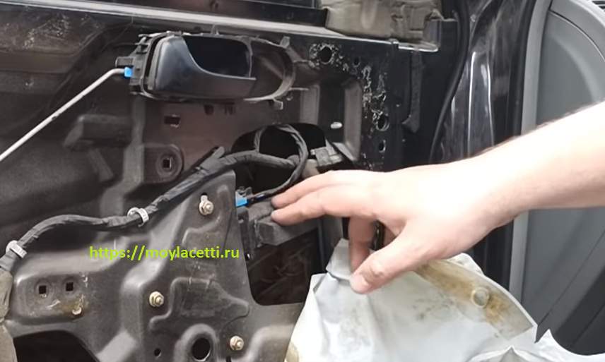 - снимаем обивку двери, добираясь тем самым до механизма стеклоподъемника.