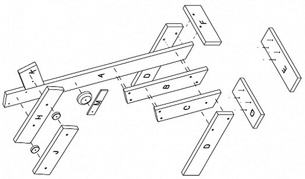 - Нарежьте доски необходимых размеров. С помощью лобзика изготовьте балки, а также сгладьте углы;
