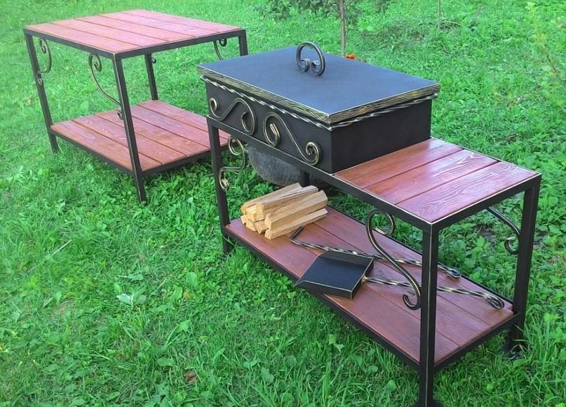- Надежность и безопасность. Если конструкция сделана с учетом всех норм пожарной безопасности, то процесс приготовления на ней будет намного проще, чем на приспособленных столах, которые могут и загореться от нагретого до высокой температуры металла.