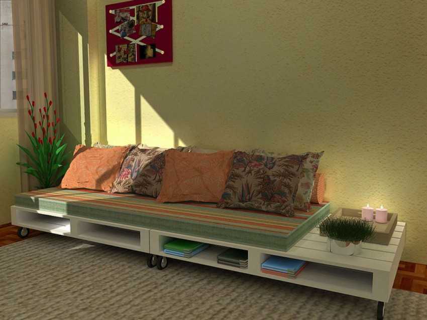 | Стоимость готового изделия – буквально копейки. | Ухаживать за конструкциями из поддонов непросто – под ними скапливается пыль, которую непросто убирать. |