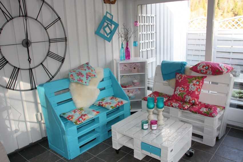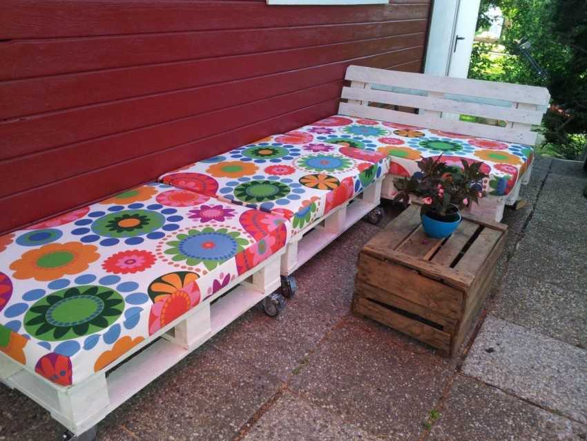 - высота сиденья. От этого зависит число используемых паллет: для формирования низкого сиденья их устанавливают друг на друга в два ряда, высокого — в три;