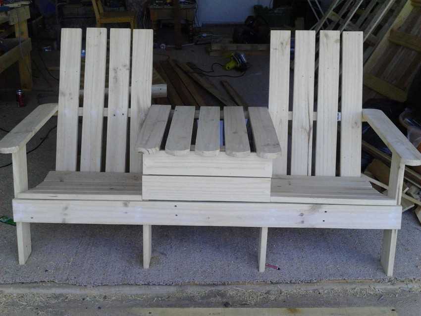 - изготавливают ножки путем подрезания брусков. Прикручивают их к сиденью снизу в углах и посредине.