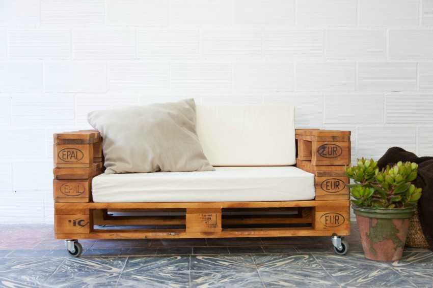 С приобретением как использованных, так и новых поддонов проблем в наши дни не возникает. Но при этом необходимо помнить о необходимости обработки заготовок для самодельных диванов. В принципе, при необходимости паллеты можно собрать своими руками, используя доски соответствующих размеров. Однако, как показывает практика, оптимальным вариантом будут изделия промышленного производства. Кстати, стандартный поддон способен выдерживать нагрузку не менее 1 тонны.