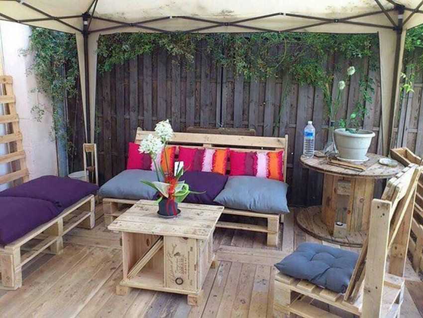 В сети интернет можно найти различные проекты строительства беседок, зон отдыха на даче и в частном доме, всевозможной мебели и различных элементов благоустройства, выполненных из деревянных паллет. Расходы на приобретение таких материалов будут минимальны, не требуется какой-либо опыт работы со столярным инструментом, а с изготовлением таких поделок разберётся каждый дачник и владелец частного дома.