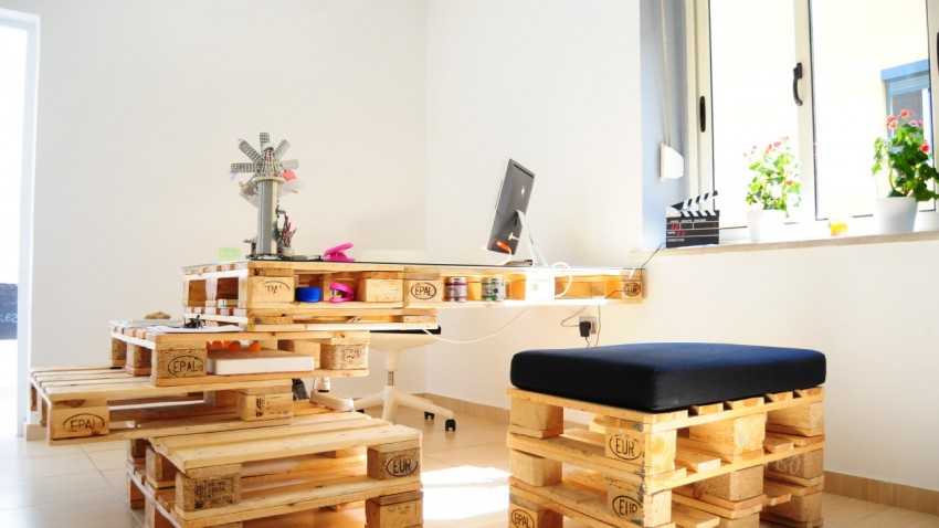 Деревянные паллеты можно разделять на отдельные элементы или объединять в общую конструкцию, повышая параметры прочности, устойчивости и надежности мебели.