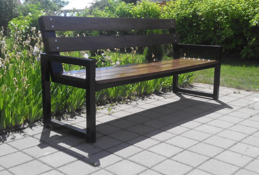 - Металл часто используют как прочный каркас, а сиденья и спинки делают из других материалов – дерева, пластика, ДПК и т.д. Это позволяет бороться с очевидным недостатком конструкций.