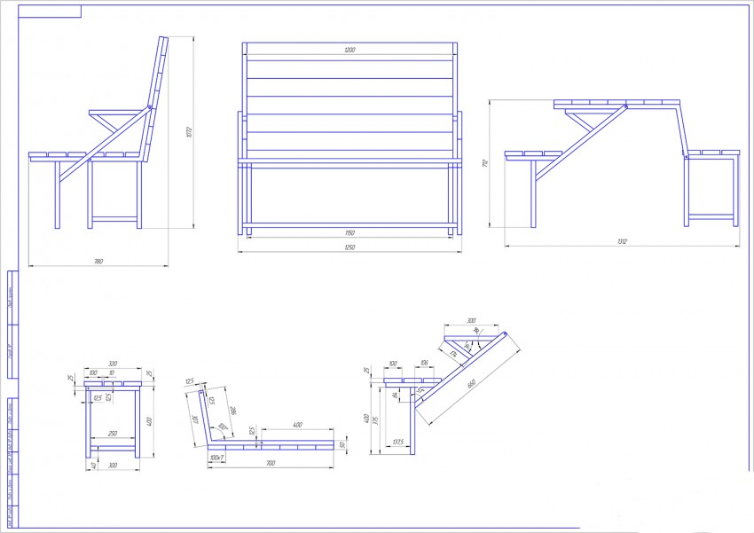 Рассмотрим пошаговое изготовление различных моделей скамеек-трансформеров.