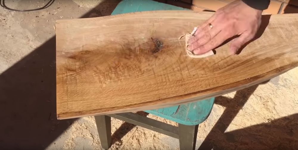 стол с деревянного полотна и стеклянной встовкой уютная светлая кухня с мебелью своими руками