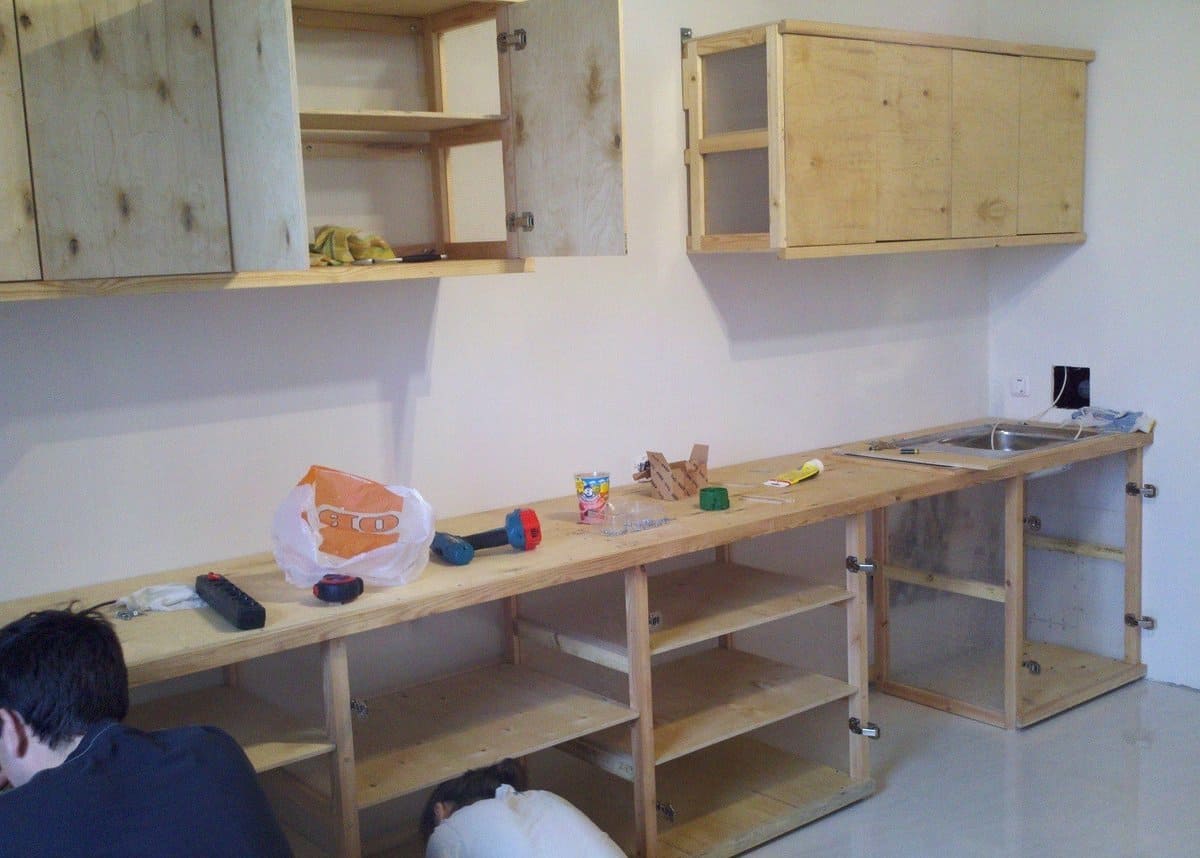 Сделать основу столешницы для кухни из керамической плитки возможно своими руками. Для этого используют фанерные листы как основание.