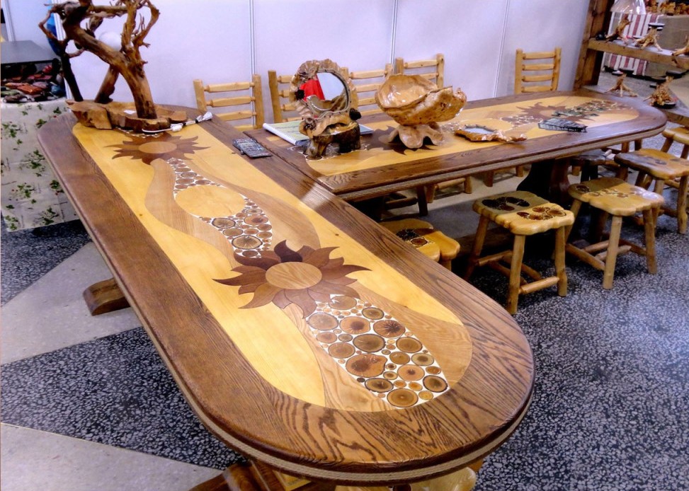 Специализированные сайты предлагают большой выбор фото самодельных столов из древесины. Реально оценивая свой потенциал возможностей, не грешно будет внимательно изучить мастер – классы по самостоятельному изготовлению в домашних условиях деревянных столов.