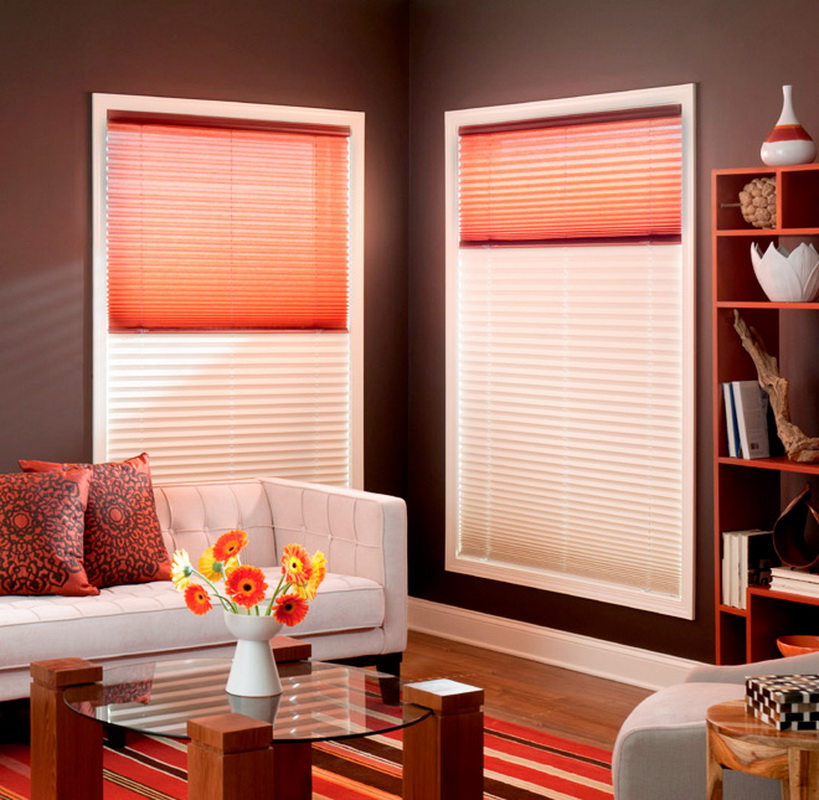 Внешне конструкция таких штор напоминает горизонтальные обычные жалюзи, но с тканью в виде плиссе, то есть с четкими складками.
