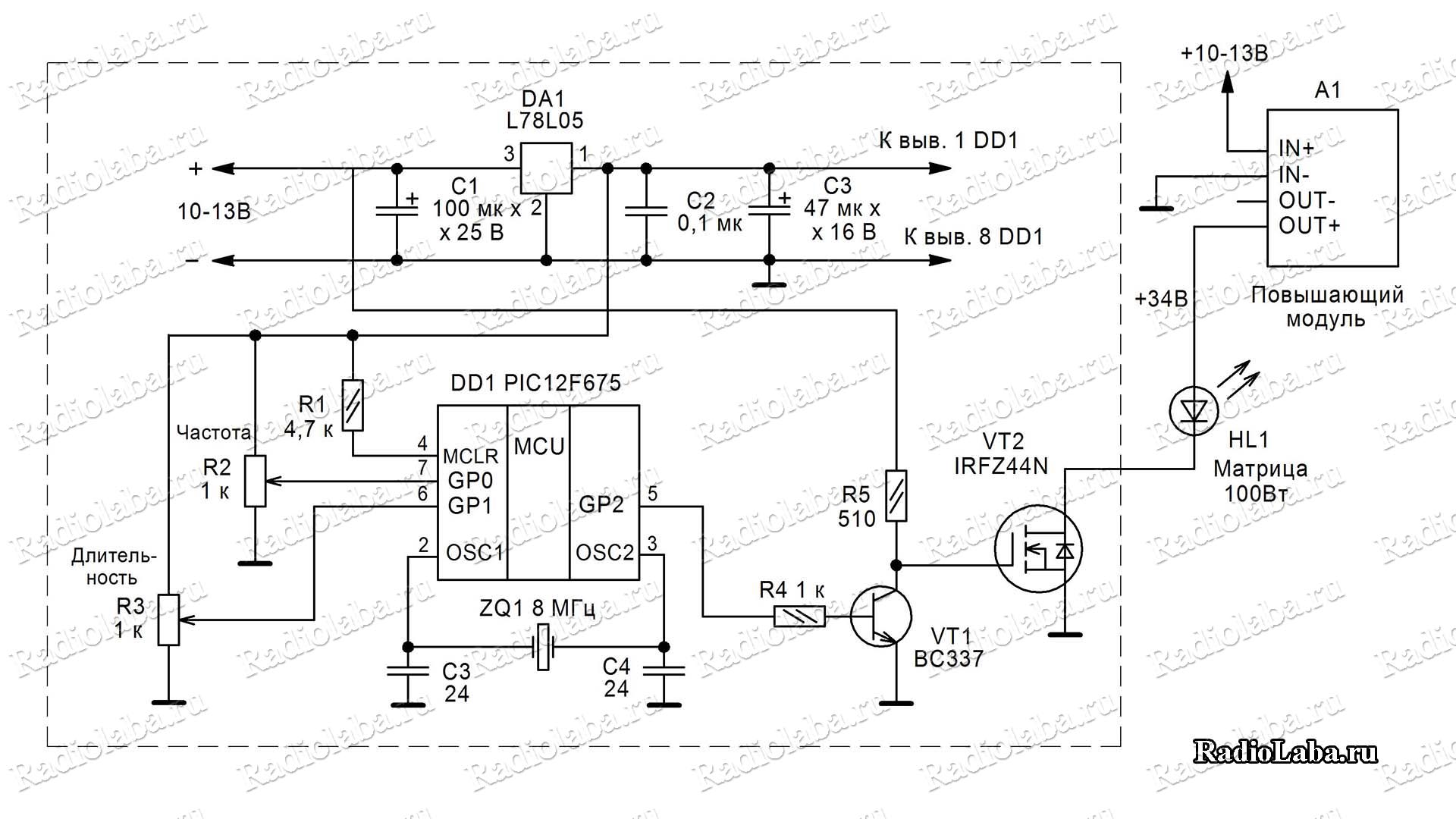 Схема сборки автомобильного стробоскопа в корпусе от старого фонарика