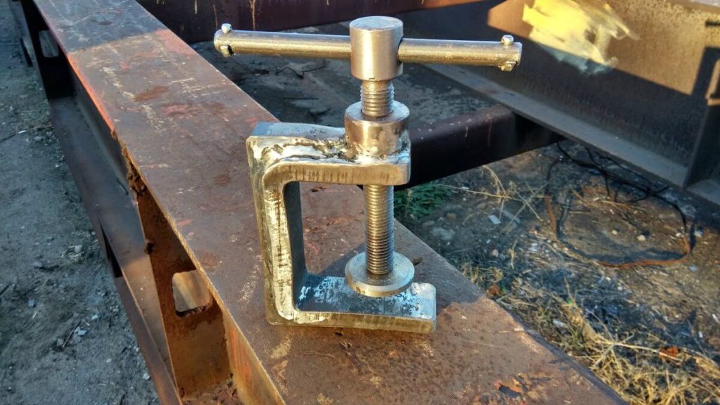 Можно поступить еще проще и использовать в качестве «основы», например, два уголка. сваренных вместе или часть швеллера. Такие струбцинки разных размеров будут всегда полезны в хозяйстве.