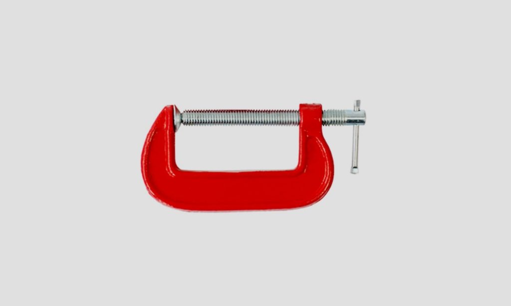 Это простейший вариант струбцин. Конструкция таких приспособлений представлена обыкновенной скобой с винтовым прижимом. Пример на фото ниже.