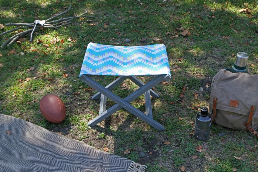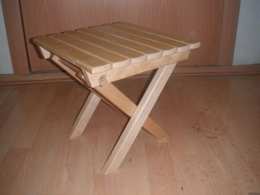 И на этом изготовление складного стула своими руками можно считать законченным. В качестве дополнительного «аксессуара» к вашему табурету можно прикрутить ручку, тогда его будет проще переносить, особенно если в руках кроме него нужно нести еще снасти и удочку. Просто вместо коротких болтов, соединяющих внутренние перекладины, возьмите крепеж чуть длиннее, тогда на него можно будет без проблем приспособить ручку.