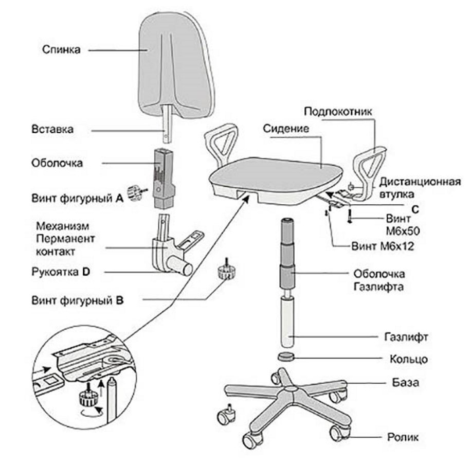 Конструктивно изделие состоит из нескольких элементов: спинки, сидения, крестовой части с роликами для передвижения по полу. Если что-либо из данных компонентов выходит из строя, пользоваться стулом невозможно. Требуется устранить поломку, чтобы продолжить нормально эксплуатировать мебель.