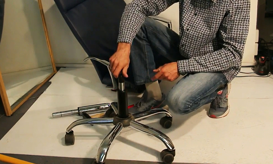Сначала отделите защитный пластиковый кожух, затем снимите ножки и колесики. Чаще всего они крепятся на фиксаторах, поэтому удалить их будет достаточно просто. Сняв пластиковые насадки с крестовины, в руках останется ее металлический каркас, из которого нужно будет выбить молотком газпатрон. Чтобы облегчить работу с крестовиной, ее можно сбрызнуть смазкой. Важно все делать аккуратно и не торопясь, чтобы обеспечить сохранность элементов.