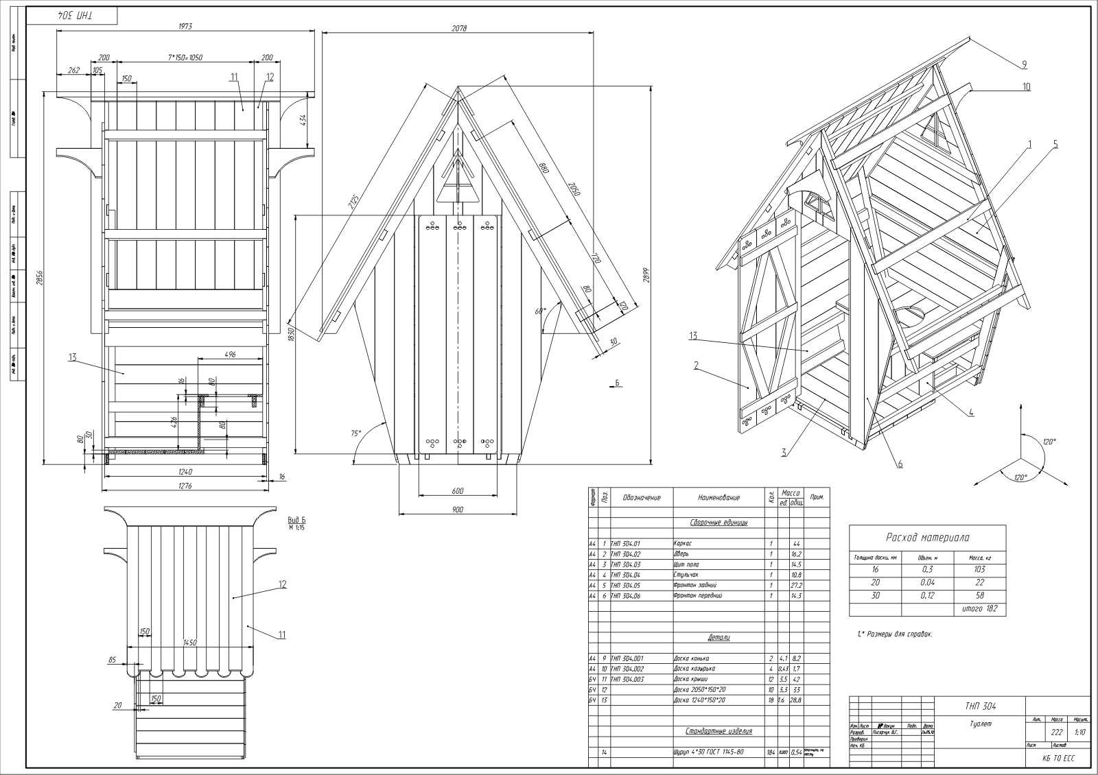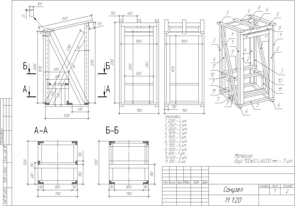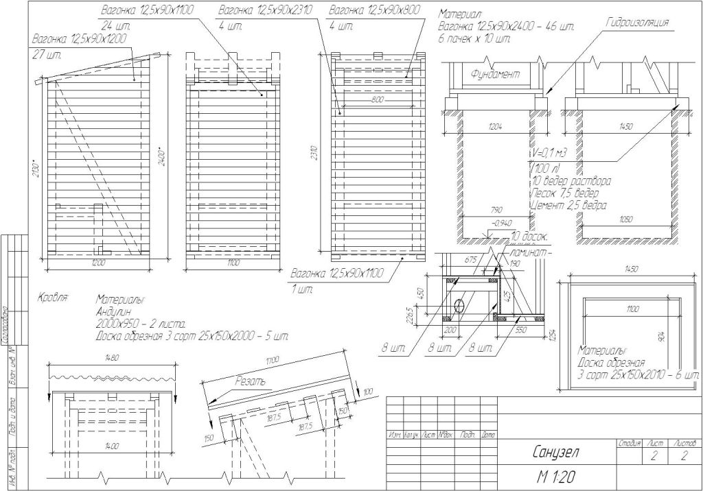 - Создавая чертеж будущей кабинки, необходимо учитывать размеры внутреннего помещения, чтобы пользоваться туалетом было удобно и безопасно.