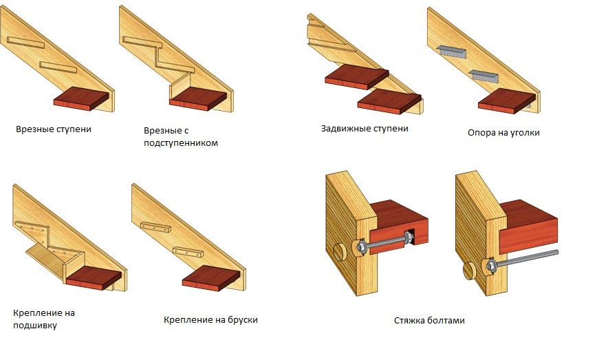 Варианты крепления ступенек на тетивах