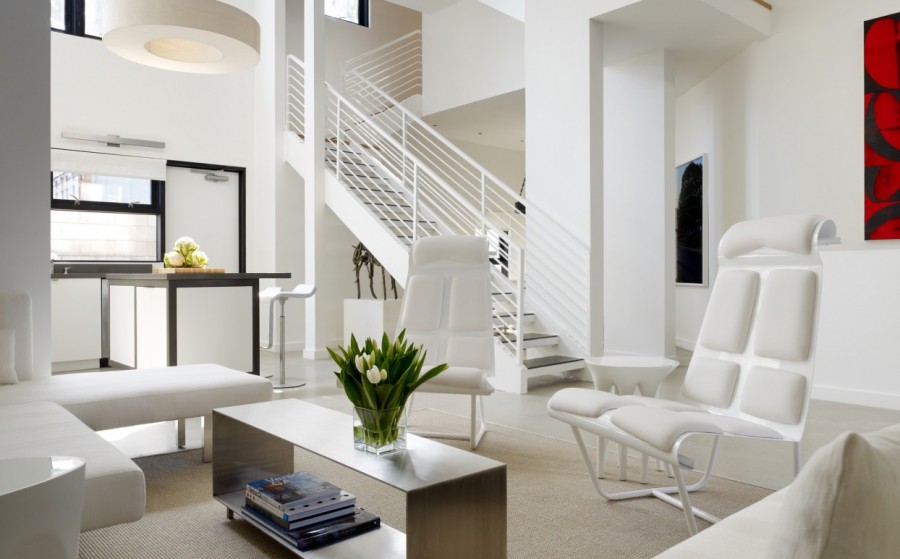 Есть примеры дизайнерских лестниц, в изготовлении которых использовано толстое закаленное стекло. Из него же сделаны и ступени.