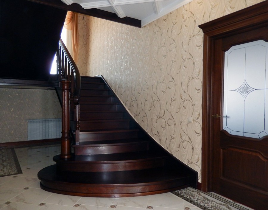 - Круглые ступени. Такие проступи отличаются тем, что они имеют радиальную направленность. Обычно таким образом оформляют крыльцо к дому. Также круглая ступень может начинать подъем на второй этаж.