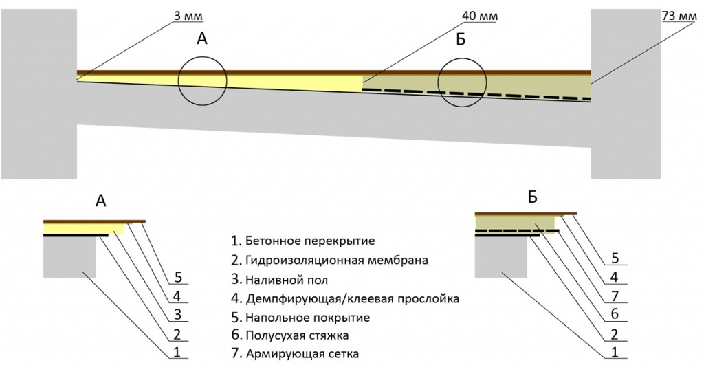 Важно, как будет работать в заданных условиях вся композиция — многослойный «пирог» пола.