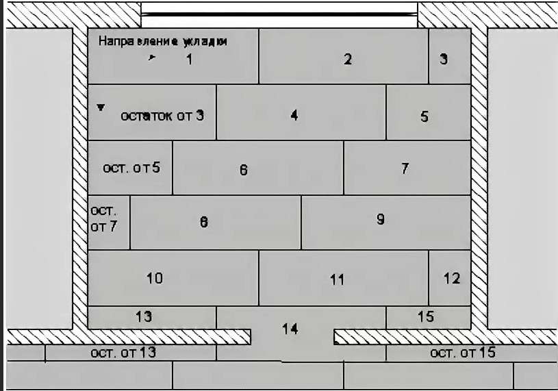 Если засыпка керамзита ведётся участками, то начинать монтаж нужно с самого дальнего от входной двери помещения угла. Если же пол предварительно полностью покрывается керамзитом, то монтаж, наоборот, следует начинать от входной двери, чтобы без проблем можно было продвигаться по ранее уложенным плитам.