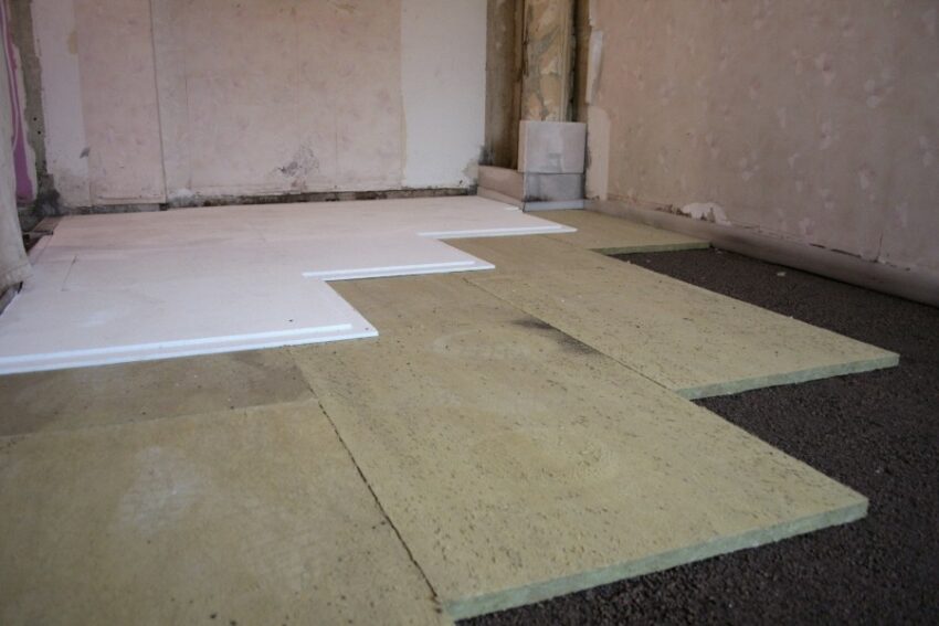 Если уровень пола в ремонтируемом помещении не нужно выравнивать, то будет достаточно укладки термоизоляционных плит, которые представляют собой экструдированный пенополистирол или минеральную вату высокой плотности. Такая прослойка необходима для обеспечения тепло- и звукоизоляции.
