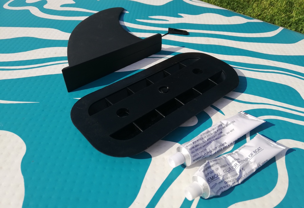 Вам достаточно приобрести дополнительный плавник с платформой, он может быть таким же как задний плавник на вашей доске. И просто приклеить его в центральной части доски в районе ручки. Для этих целей подойдет клей, который идет в ремкомплекте с любой sup доской.