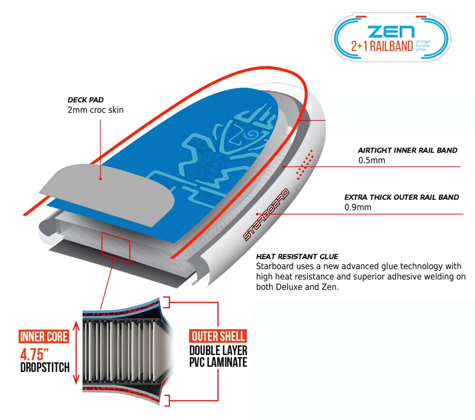 У премиальных брендов есть технологии позволяющие сделать доску более прочной, жесткой, но при этом и более легкой. У Red Paddle Co. такая технология называется MSL Fusion. У Anomy — Fresco, у Starboard — Zen, у Shark — SWL, и DL LIGHT у Fanatic. Названия разные — принцип один.