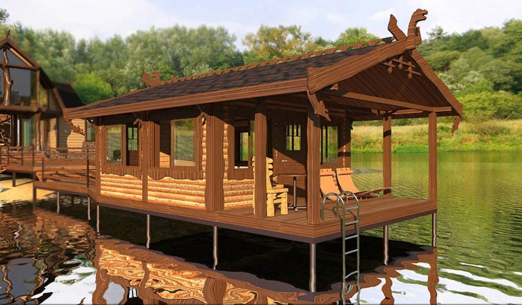 Пристань на сваях, постройка которой осложнена наличием воды и типом грунта.