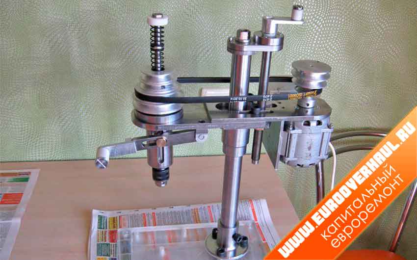 Заменить дрель в самодельном станке можно асинхронным двигателем, например от старой стиральной машинки. Схема изготовления такого станка сложная, поэтому лучше если ее будет делать специалист с опытом токарных и фрезеровочных работ, сборки электросхем.