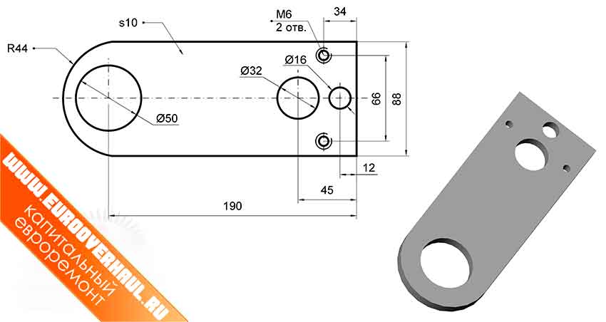- Разрабатывается чертёж (эскиз) создаваемой конструкции, при этом основными размерами являются: посадочное место установки используемой дрели и размер перемещения сверла.