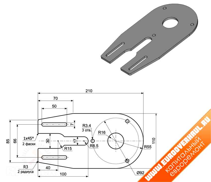 | 10 | Кронштейн ходового винта | Лист дюралюминия, δ 10 мм | |