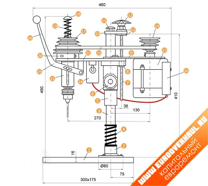 Использование электрической дрели – это, наверное, наиболее простой вариант изготовления самодельного сверлильного станка, т.к. в этом случае решается вопрос фиксации сверла (используется патрон дрели), а также обеспечивается электрический привод. Основной задачей в этом случае, которую нужно решить, является изготовление каркаса и механизма перемещения сверла в вертикальной плоскости. Все работы можно разбить на несколько этапов, определяющих характер их выполнения: подготовительный, выполнение работ и завершающий.